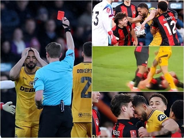 当地时间周六(1日)的足总杯第五圈赛事,狼队前锋库尼亚就是由英雄瞬间变成“狗熊”,客场对阵伯恩茅斯(般尼茅夫)这一场比赛中,他打进世界波帮助狼队追平比分,但最后阶段又忽然“跳掣”,情绪失控一般地向对手拳打脚踢还头撞对手,结果就被吃到红牌遭驱逐,狼队最终在点球决胜中互射12码点球4比5输球出局。